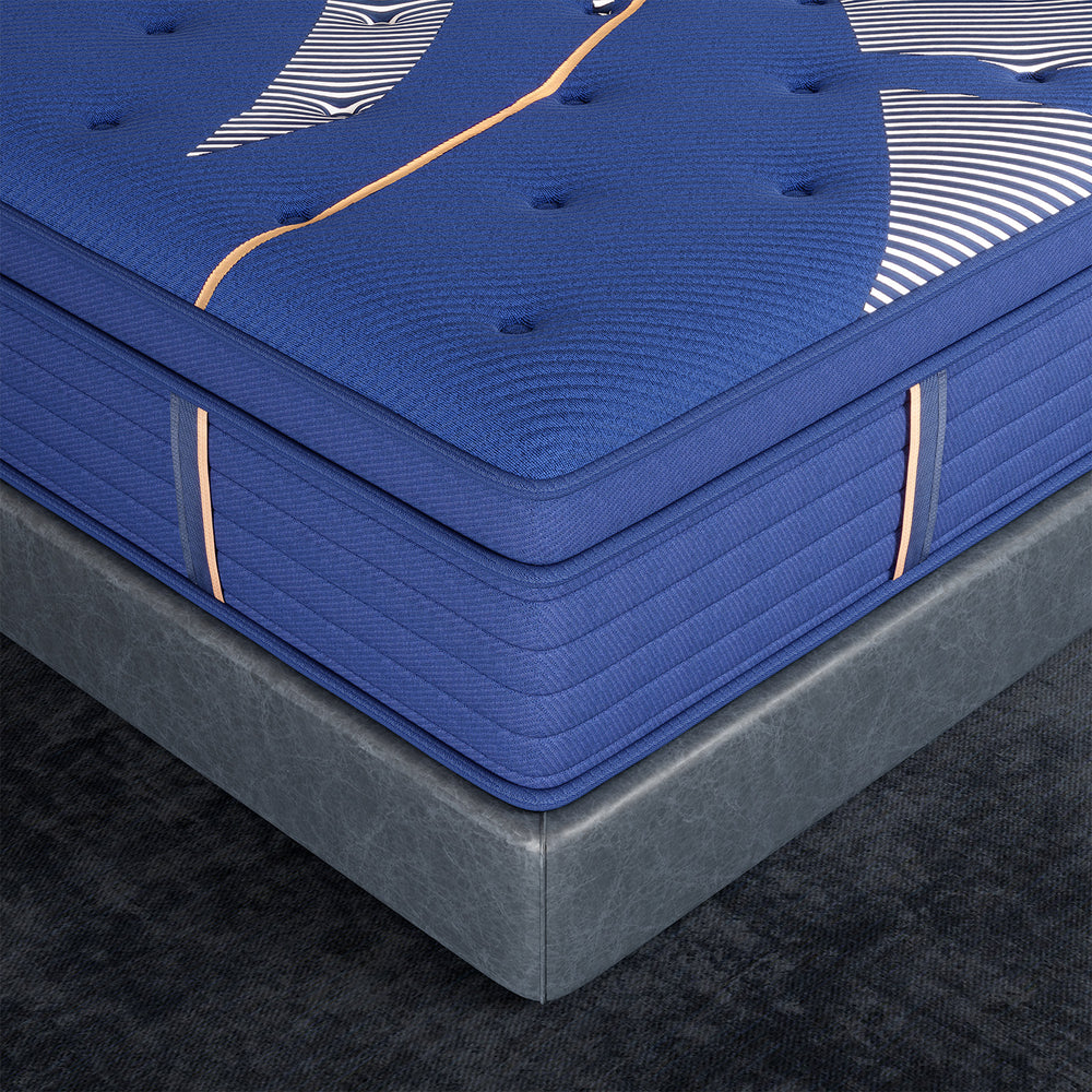 Dense pocketed coils provide strong, structured support while transition layers cushion pressure points — keeping your spine aligned and your body supported for a solid, comfortable night’s sleep.
